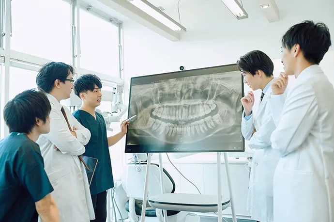 当院には複数の歯科医師が在籍し、それぞれが異なる分野で専門性を磨いています。症状や治療内容に応じて、歯科医師が連携しながら診療を行うチーム医療体制を採用しています。