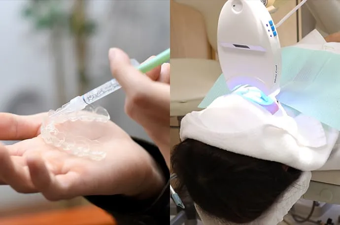 ご自宅で行うホワイトニング方法です。歯科医院で作製した専用のマウスピースと薬剤を使用し、毎日一定時間装着します。白さがゆっくりと定着し、色戻りしにくいのが特長です。自分のペースで進めたい方に適しています。