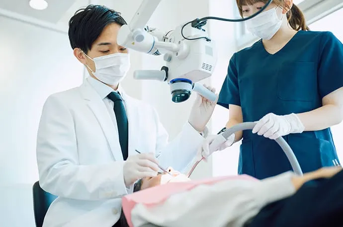 自費診療の場合は、根管治療の成功に必要な器具や材料を惜しみなく使用できるのが大きなメリットです。当院には根管治療に精通したドクターがおりますので、歯の神経の痛みや膿でお困りの方は、ぜひ一度カウンセリングにお越しください。