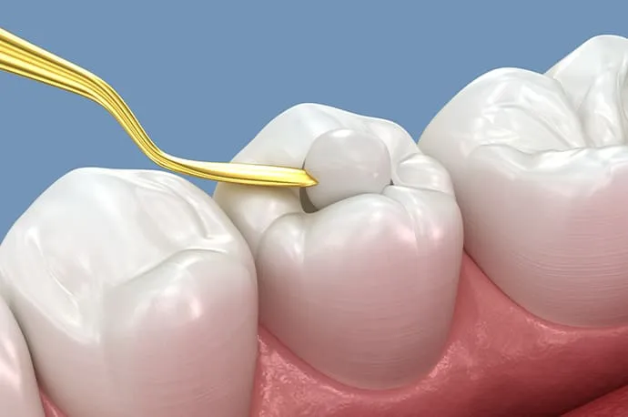 まずは虫歯を徹底的に取り除きます。虫歯を取り終えた後、治療中に細菌が入り込まないよう、歯の欠けた部分を一時的に補強します(隔壁)。