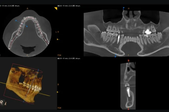 当院では、すべての患者さまにCT撮影を無料で実施しています。これにより、まだ痛みが出ていない段階の化膿や、通常のレントゲンでは見つけにくい小さな病変まで確認することが可能です。