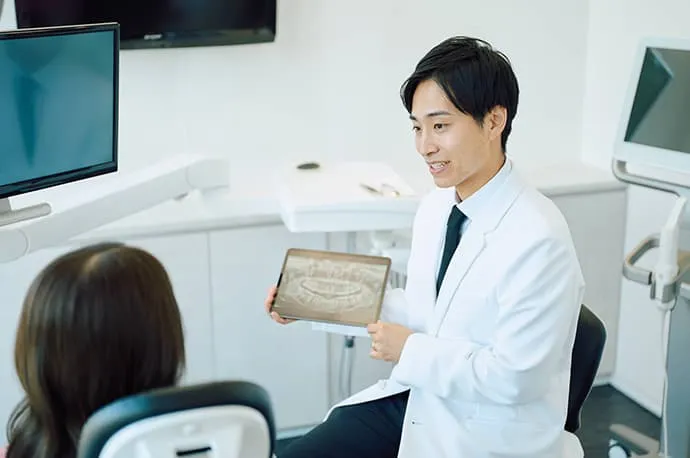 通院回数や治療期間について事前にしっかりと話し合い、患者さまのライフイベントやスケジュールを考慮した治療計画をご提案します。短期集中治療はすべての方に行うものではなく、口腔内の状態や治療内容を見極めたうえで適応を判断します。事前のカウンセリングと丁寧な説明を重視し、納得して治療を進めていただける体制を大切にしています。