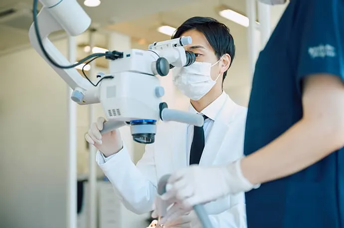 精密な診断と治療を行うため、先端機器を積極的に導入しています。肉眼では確認が難しい部分も拡大視野で確認できるマイクロスコープ、口腔内をデジタルデータとして取得できる口腔内スキャナー、立体的な診断が可能な歯科用CTなどを使用します。