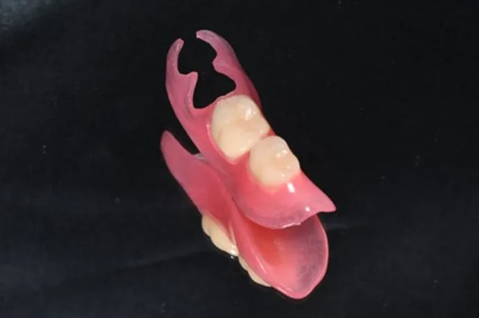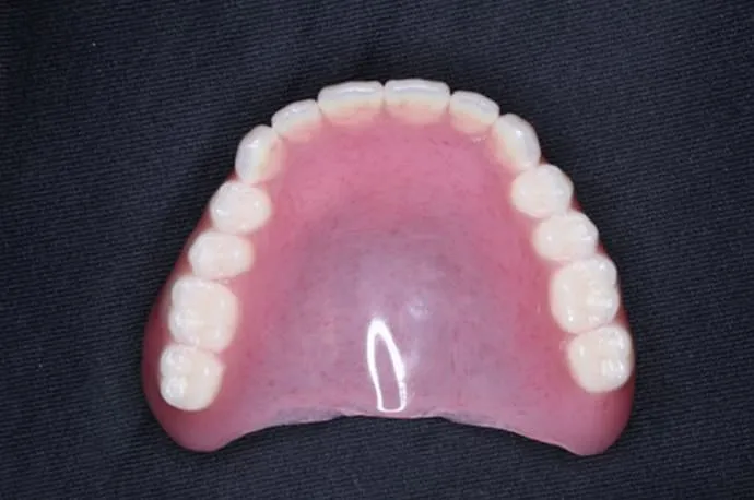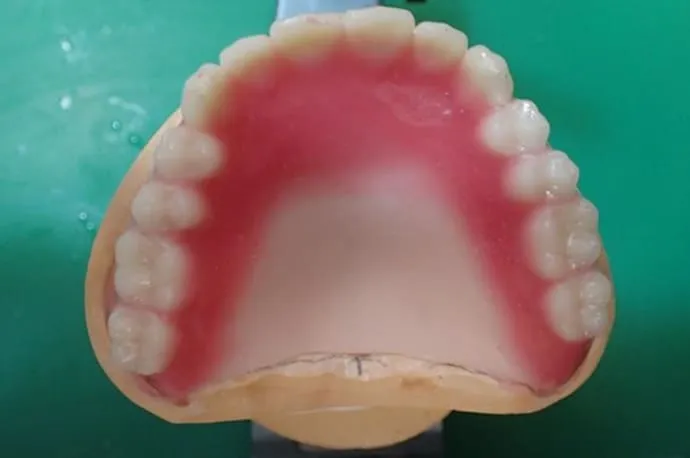 問題がなければ、蝋の部分を最終材料に置き換え、入れ歯が完成します。