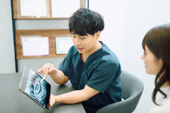 当院では、すべての患者さまにCT撮影を無料で実施しています。これにより、まだ痛みが出ていない段階の化膿や、通常のレントゲンでは見つけにくい小さな病変まで確認することが可能です。